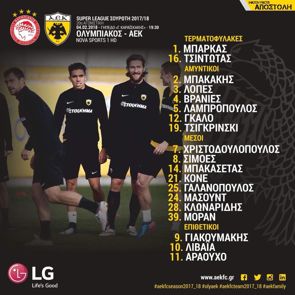 Η αποστολή της ΑΕΚ για Καραϊσκάκη (pic)