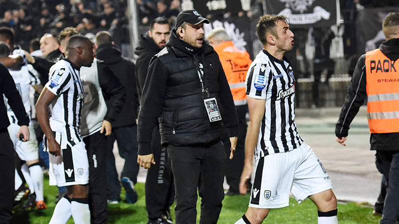 Γι' αυτό ο πρόεδρός μας ήταν δυσαρεστημένος, πολύ αναστατωμένος, γιατί είδε μια κατάσταση να επαναλαμβάνεται για δεύτερη φορά στην έδρα μας, χωρίς να ευθυνόμαστε ούτε εμείς, ούτε ο κόσμος μας. Στη συνέχεια μπήκε στον αγωνιστικό χώρο και ζήτησε από τους παίκτες να φύγουν. Έγιναν όλα πολύ γρήγορα, δεν είδαμε κάτι άλλο. Η ΑΕΚ πήγε στα αποδυτήρια, όπως επίσης και ο διαιτητής και έπρεπε και εμείς να πάμε μέσα και στα αποδυτήρια η συζήτηση κράτησε για πολλή ώρα».