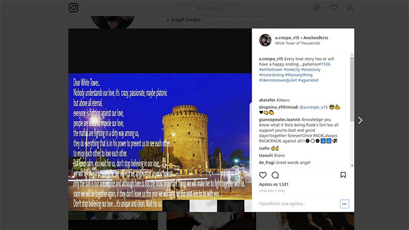 Εγραψε ο Ισπανός αμυντικός του ΠΑΟΚ στον προσωπικό του λογαριασμό στο Instagram: