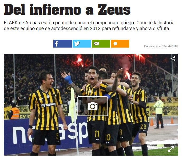 «Η δόξα είναι κοντά για τον σύλλογο στον οποίο θυμούνται με ξεχωριστό τρόπο τους Αργεντινούς Σεμπάστιαν Σάχα, Νάτσο Σκόκο και Ίσμαελ Μπλάνκο. Την προσεχή Κυριακή η ΑΕΚ μπορεί να κάνει τον γύρο του θριάμβου μπροστά στον κόσμο της στο παιχνίδι με τον Λεβαδειακό, αφήνοντας πίσω το παρελθόν», καταλήγει το δημοσίευμα.