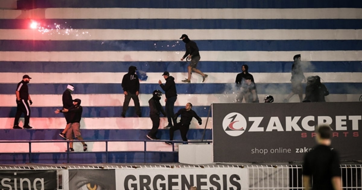 Άναψαν τα αίματα στο Περιστέρι, όταν στο 56' της αναμέτρησης του Ατρόμητου με τον Παναθηναϊκό, οπαδοί των φιλοεξενούμενων κινήθηκαν απειλητικά κατά των γηπεδούχων. Έσπασαν το διαχωριστικό και έφυγαν δύο φωτοβολίδες. Ακολούθησε για λίγα δευτερόλεπτα ανταλλαγή αντικειμένων, όμως τα πνεύματα ηρέμησαν άμεσα, με τους οπαδούς του Παναθηναϊκού να επιστρέφουν στις θέσεις τους. Το ματς διεκόπη για λίγα λεπτά και στη συνέχεια ξεκίνησε κανονικά.