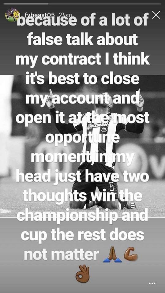 Ετσι, αποφάσισε να κλείσει προσωρινά και μέχρι το τέλος της σεζόν τον προσωπικό του λογαριασμό στο Instagram προκειμένου να μείνει ήρεμος και προσηλωμένος στις αγωνιστικές υποχρεώσεις του με το «Δικέφαλο».