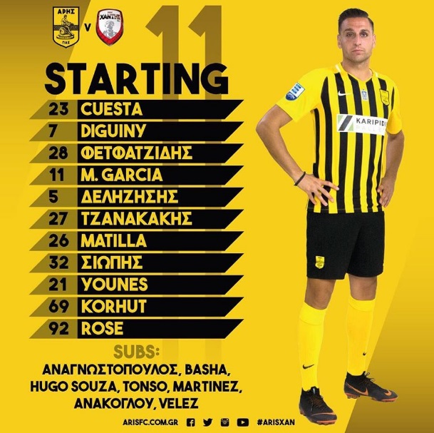 Η 11αδα του Άρη όπως ενημέρωσε η ΠΑΕ στον λογαριασμό της στο Facebook