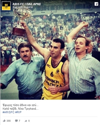 Η ΠΑΕ Άρης για τον θάνατο του Νίκου Τριγλιανού