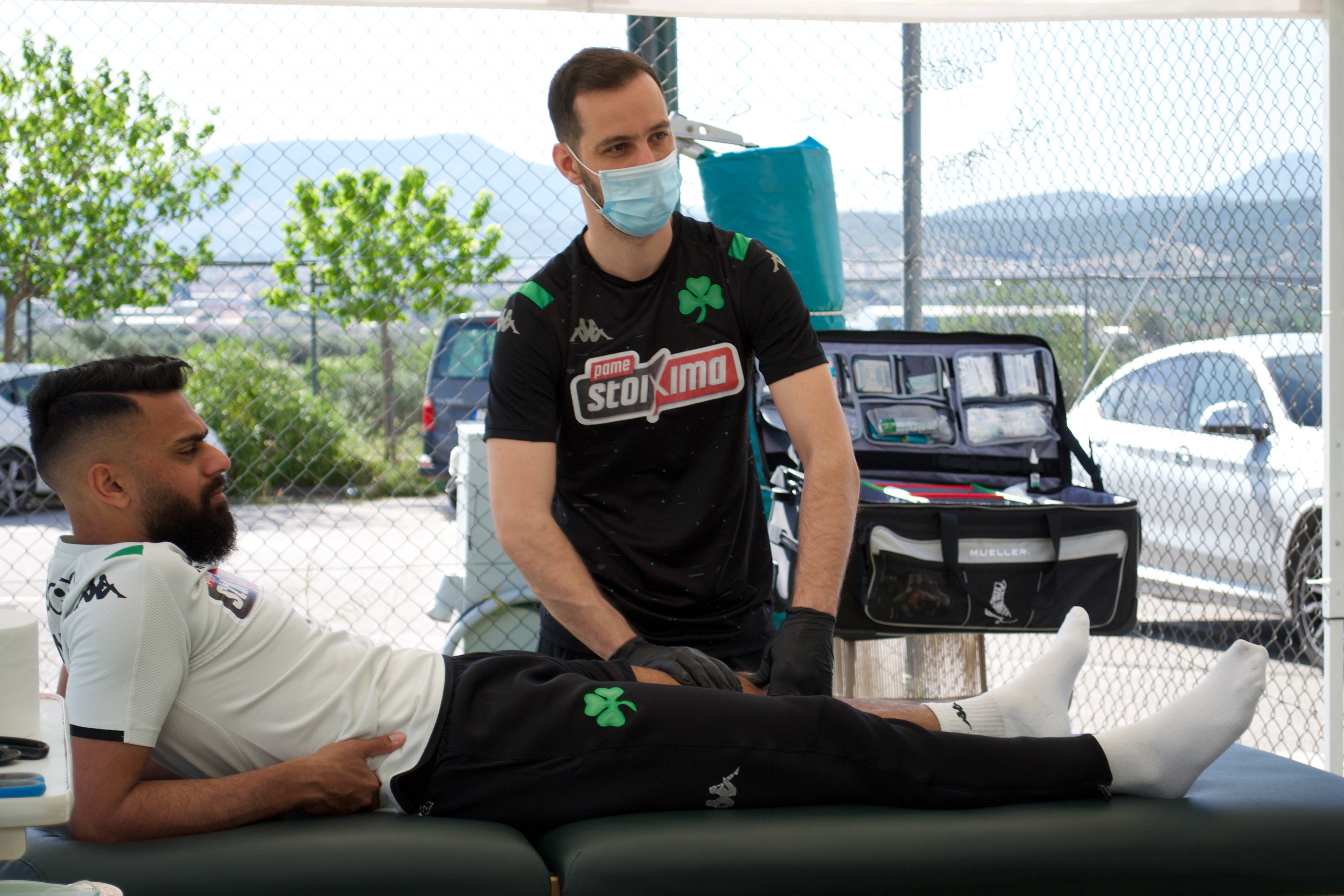 Ένα των τερματοφυλάκων και άλλα τρία στα οποία βρίσκονταν από 8 ποδοσφαιριστές. Με διαφορετικές ώρες προσέλευσης, χωρίς χρήση αποδυτηρίων, γυμναστηρίου, φυσικοθεραπευτηρίου (έχει στηθεί ειδικός χώρος σε εξωτερικό σημείο όπου γίνονται τα απαραίτητα από τους φυσικοθεραπευτές της ομάδας) και γενικώς κάθε κλειστού χώρου.