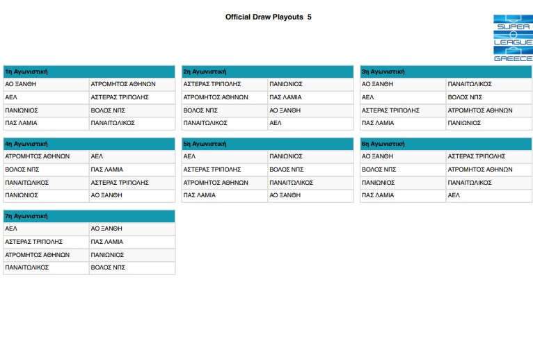 - SuperLeague: Η βαθμολογία των play off και των play out