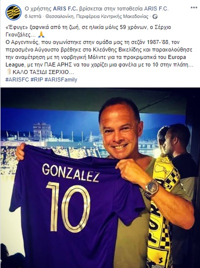 Άρης: Πέθανε ο Σέρχιο Γκονζάλες