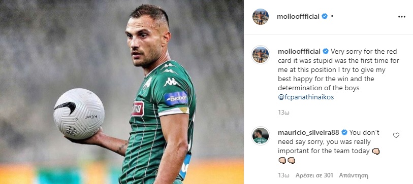 Ο Γάλλος εξτρέμ με δυο κίτρινες κάρτες αποβλήθηκε στο πρώτο του παιχνίδι ως βασικός μετά την επαναφορά του στο ρόστερ από τον Μπόλονι. Θέλησε ν' απολογηθεί δημόσια και να δηλώσει πόσο απογοητευμένος ήταν από τον εαυτό του για την «ηλίθια», όπως την χαρακτήρισε, κόκκινη κάρτα. «Δεν υπάρχει κανένας λόγος να ζητάς συγγνώμη, ήσουν πολύ σημαντικός για την ομάδα» του έγραψε ο Μαουρίσιο που έσπευσε να του ανεβάσει το ηθικό και να δείξει ότι θέλει να τους διατηρεί όλους όσο γίνεται σε καλό πνευματικό επίπεδο... Ακόμα κι εκεί, προσφέρει κέρδος για τον Παναθηναϊκό...