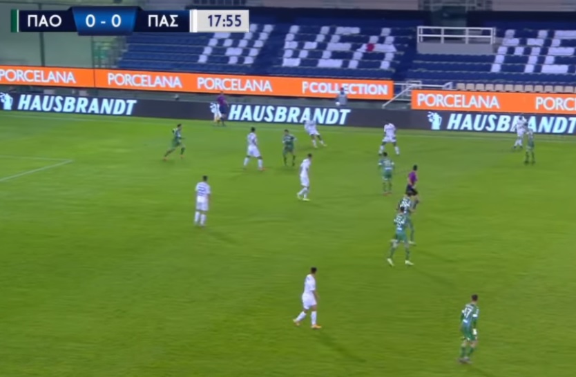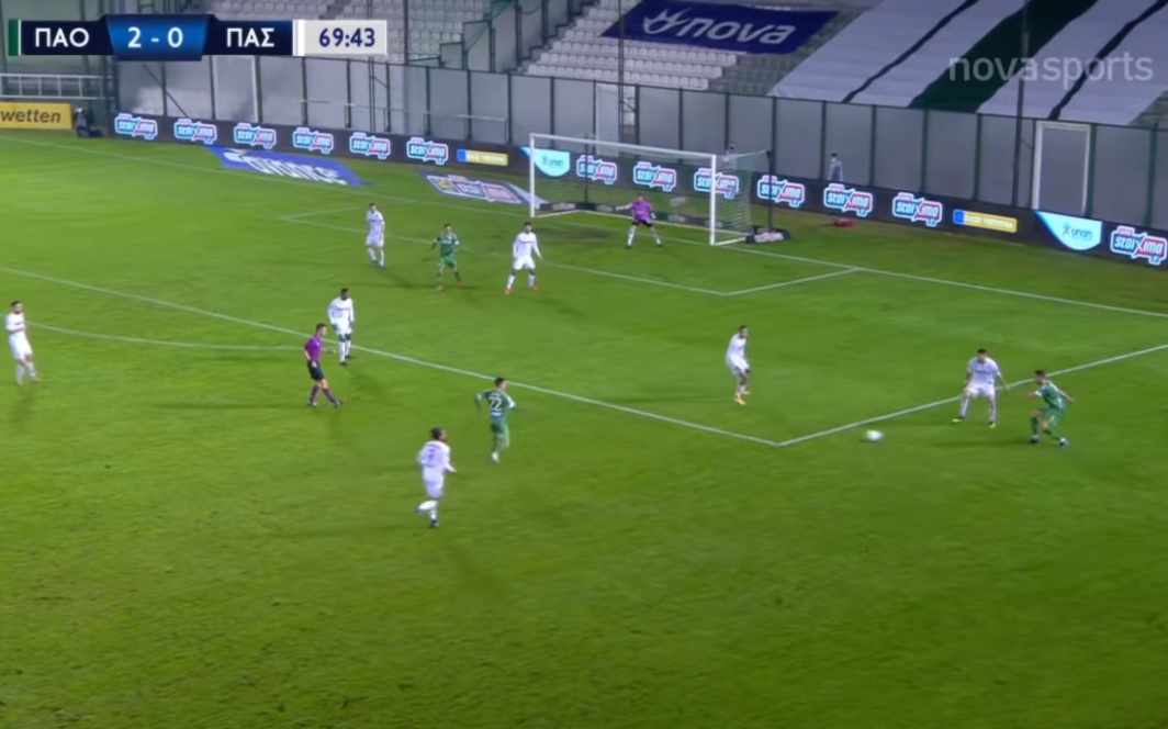 Λίγο πριν την ανάπαυλα, όταν ο Χατζηγιοβάνης χάνει τη μεγάλη ευκαιρία σχεδόν πάνω στη γραμμή υπό την πίεση και του αμυντικού, ο Μακέντα ήξερε ακριβώς που να κινηθεί αριστερά μαζί με τον Βιγιαφάνιες, κάνοντας τη δεύτερη τακουνιά στο χώρο όπου την ίδια στιγμή εκμεταλλεύεται και ανοίγεται ο Βασίλης Ζαγαρίτης.