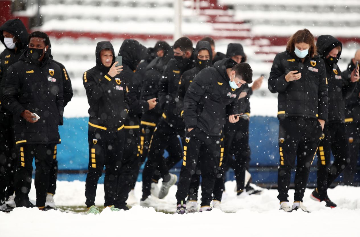 Η ΑΕΚ από τη δική της τη μεριά πάντως αποφάσισε να πάει κανονικά στο γήπεδο και να ακολουθήσει ό,τι προβλέπει ο κανονισμός αναμένοντας την οριστική απόφαση του διαιτητή και φυσικά της Λίγκας. Την ίδια στιγμή ο αγωνιστικός χώρος δεν είχε καθαριστεί, ενώ το χιόνι είχε αρχίσει να πέφτει πιο πυκνό σε σχέση με τις πρωινές ώρες.