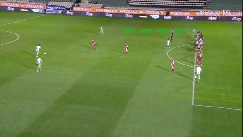- Ο Βέλεθ σε όλες τις φάσεις είναι ο τελευταίος παίκτης στην επιθετική γραμμή που σχηματίζουν οι παίκτες του Παναθηναϊκού, όντας στην διαγώνιο με την μπάλα.