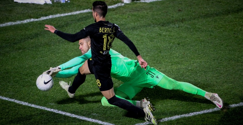 Στο δεύτερο γκολ της ΑΕΚ ο Σάκχοφ σκαρφάλωσε πάνω στον Κρέσπο, ούτε εκεί είδαν τίποτα.