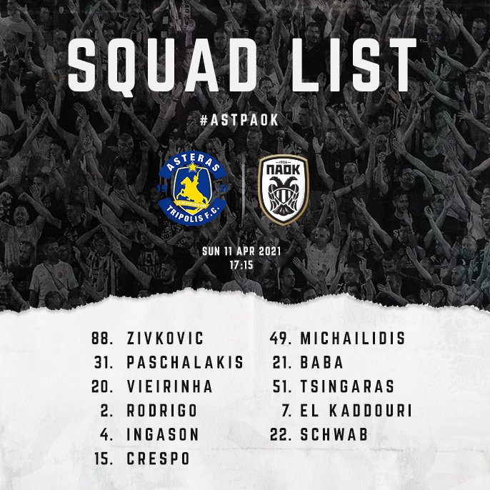 Αναλυτικά οι παίκτες που επέλεξε το τεχνικό επιτελείο για να ταξιδέψουν στην Τρίπολη είναι οι: