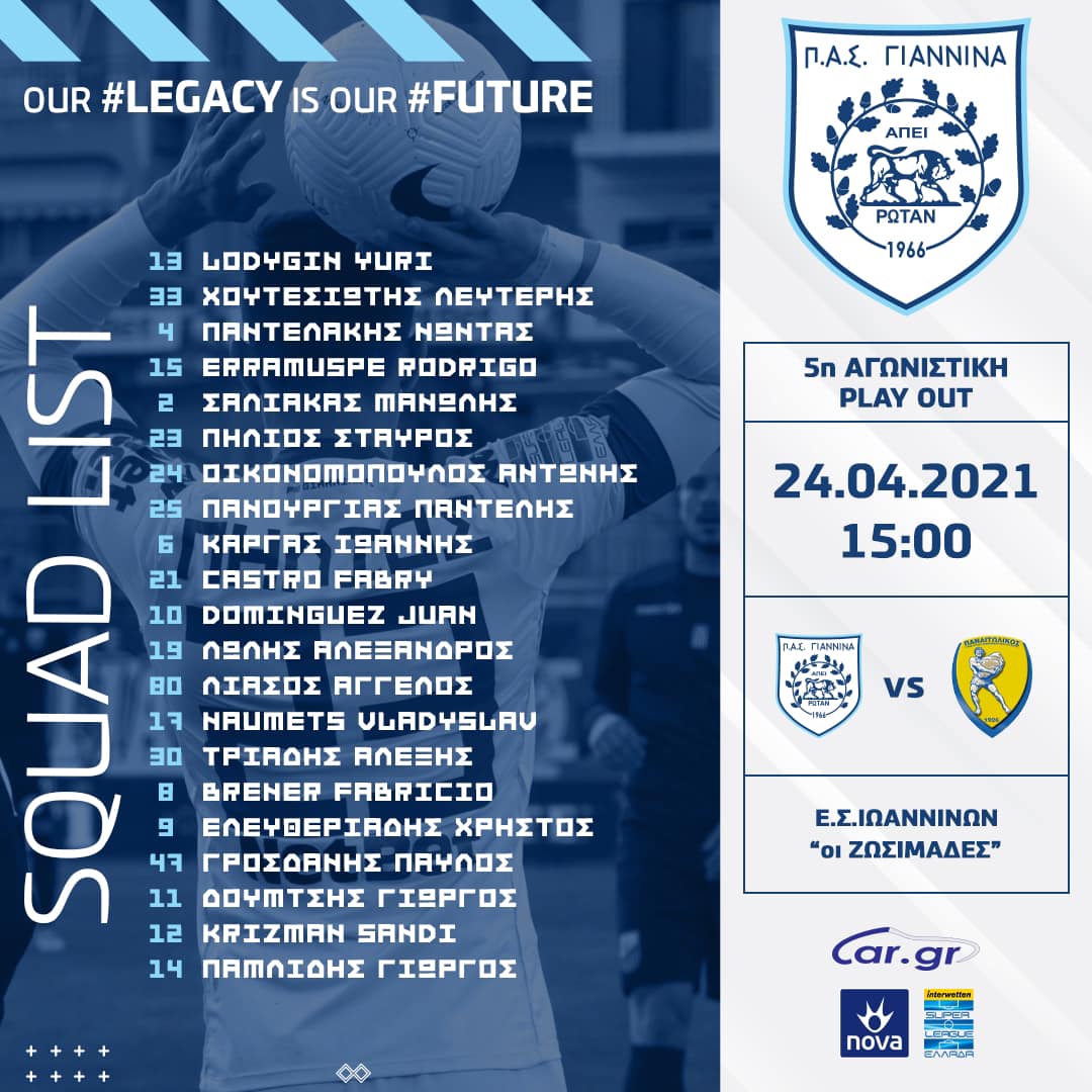Car.gr ΠΑΣ Γιάννινα: Εκτός ο Καρτάλης (pic)