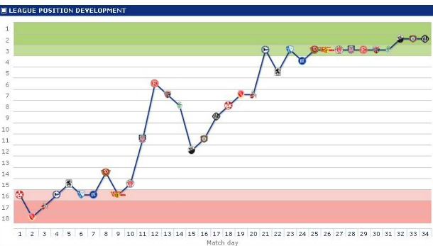 *Στο γράφημα η θέση της Πάντερμπορν κατά τη διάρκεια της σεζόν (πηγή Transfermarkt)