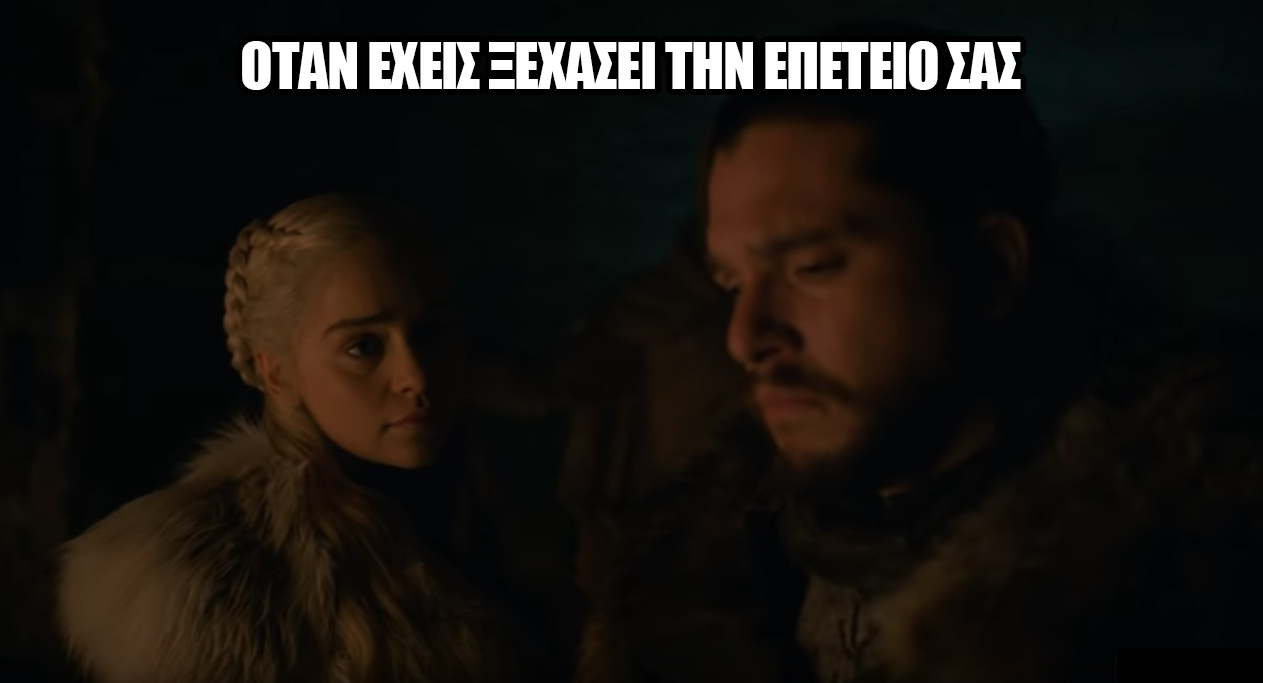 Προκειμένου να συνεισφέρουμε κι εμείς τον οβολό μας στο να γίνει για άλλη μια χρονιά viral το Game Of Thrones, παρακολουθήσαμε κάμποσες φορές το τρέιλερ της 8ης σεζόν και δημιουργήσαμε τα 10 παρακάτω memes.