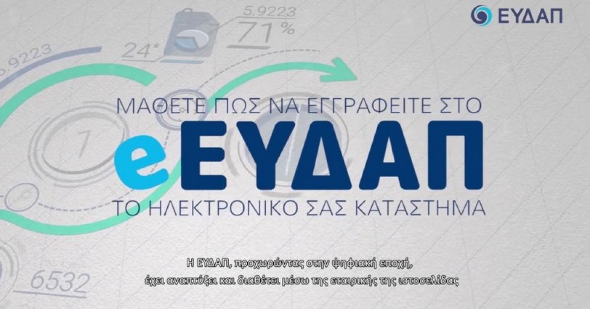 Το νέο βίντεο της ενότητας «Μάθετε πώς…», με θέμα «Μάθετε πώς… Να εγγραφείτε στο eΕΥΔΑΠ, το ηλεκτρονικό σας κατάστημα!», βρίσκεται ήδη online στα επίσημα κανάλια της ΕΥΔΑΠ στο Youtube, Facebook και Linkedin καθώς και στην ιστοσελίδα της Εταιρείας www.eydap.gr. Ακολουθήστε την ΕΥΔΑΠ στα social media για ακόμα περισσότερα videos, tips και χρήσιμες συμβουλές.