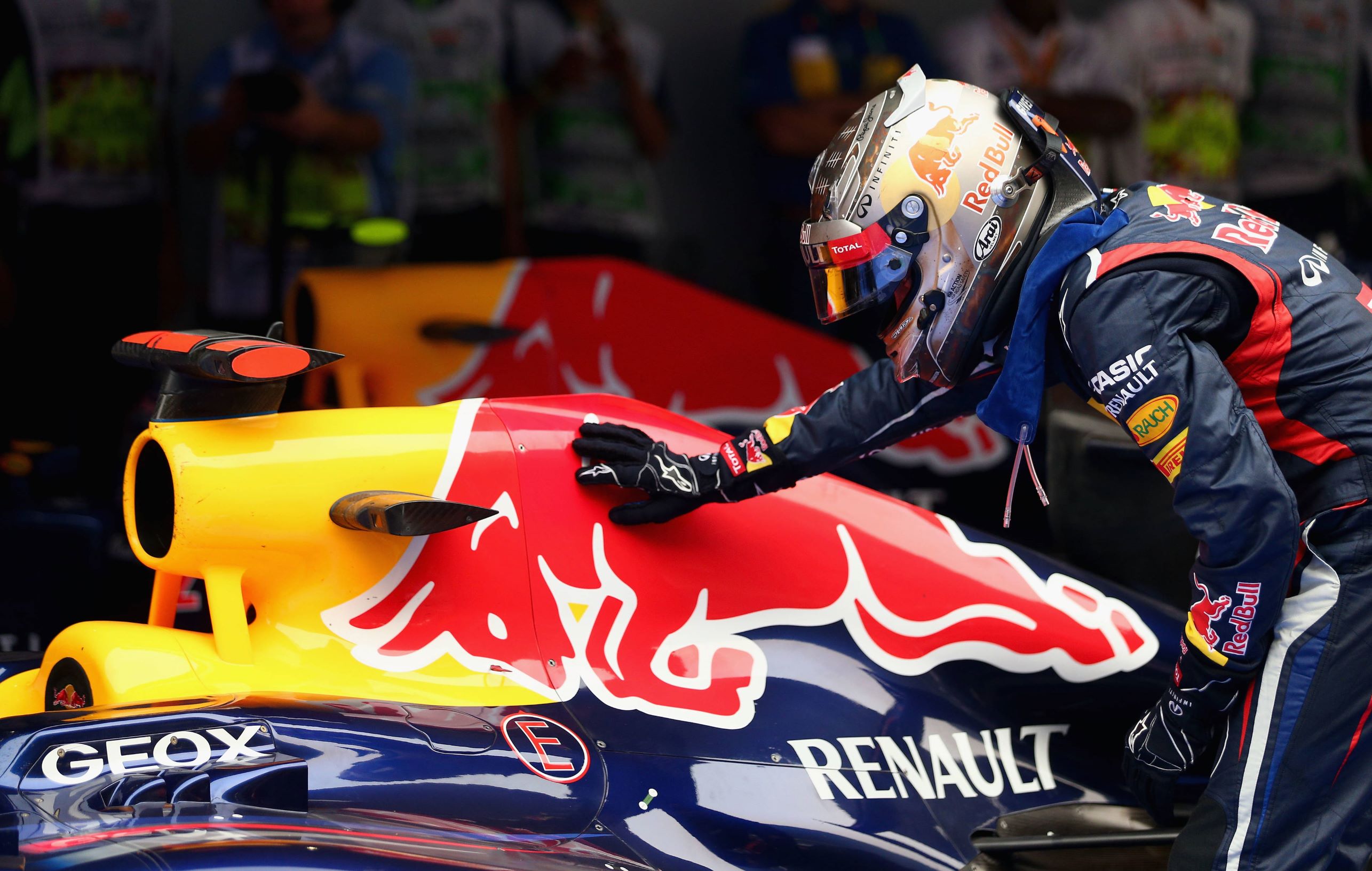 «Τα χρόνια που πήραμε τα τέσσερα πρωταθλήματα (2010-2013), χρησιμοποιούσαμε τον V8 της Renault. Είχαμε εξαιρετική συνεργασία με τους μηχανικούς της Renault. Πιστεύω πως πρέπει να πω ότι δεν ήταν ο πιο ισχυρός V8, αλλά ήταν ένα προϊόν που “έραψαν” για τα μέτρα του μονοθεσίου μας. Είχαμε συγκεκριμένες απαιτήσεις, ειδικά στον τρόπο που χρησιμοποιούσαμε τις εξατμίσεις. Όταν μπήκαμε στην υβριδική εποχή, η Renault δεν κατανόησε πλήρως τους κανονισμούς όπως η Mercedes και ήμασταν πολύ πίσω. Την πρώτη χρονιά αποδεχθήκαμε πως όλοι κάνουμε λάθη, το σασί, ο κινητήρας, υπάρχουν νέοι κανονισμοί, μπορείς να πετύχεις, μπορείς να αποτύχεις. Η Renault απέτυχε. Όταν ξεκινήσαμε το πρωτάθλημα του 2015 ο κινητήρας έμοιαζε να είναι χειρότερος από του 2014 κάτι το οποίο ήταν πολύ απογοητευτικό. Συνειδητοποιήσαμε πως στο προσεχές μέλλον αν κάναμε καλή δουλειά σε αγώνες θα παίρναμε νίκες αλλά ποτέ δεν θα μπορούσαμε να πάρουμε πρωτάθλημα. Έπρεπε όλοι να κάνουμε συμβιβασμούς, ειδικά μετά από μία περίοδο κυριαρχίας που κατακτήσαμε τέσσερα πρωταθλήματα. Αυτή θα ήταν η πραγματικότητα για το προσεχές μέλλον», είπε ο Βρετανός σε συνέντευξη που δημοσίευσε η Red Bull.