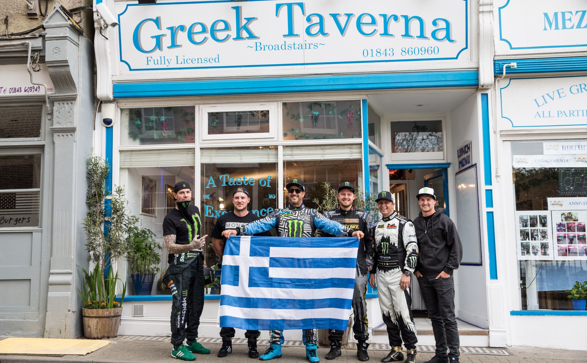 Σε αυτό, όλα τα αστέρια του θεσμού βρίσκονταν σε μία… Greek Taverna. O πρώην παγκόσμιος πρωταθλητής του WRC, Πέτερ Σόλμπεργκ, διάβαζε ελληνική εφημερίδα. Ο σχεδόν αναρχικός Σέιν Λιντς που μας συστήθηκε μέσω των Boyzone αλλά στην πορεία «αγρίεψε» και ο drifter Στιβ «Μπάγκσι» Μπιατζιόνι έπαιζαν τάβλι. O ταχύτατος Αντρέας Μπάκερουντ έτρωγε καρπούζι ενώ στο βάθος, η σούβλα ήταν γεμάτη και γύριζε υπό τους ήχους μπουζουκιού.