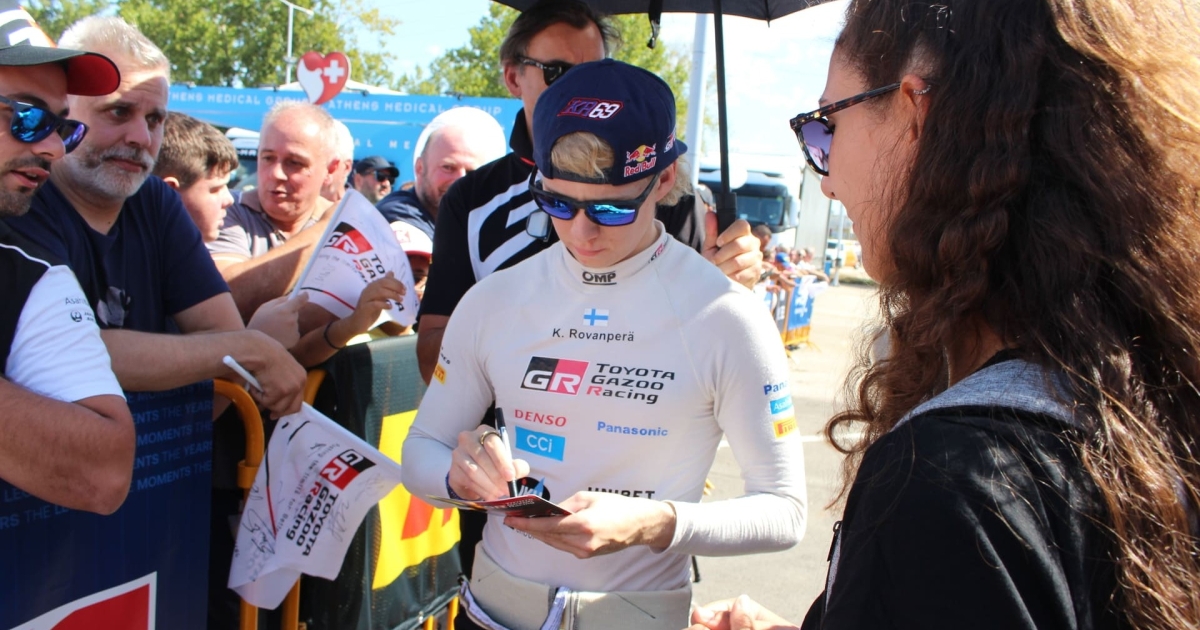 Δεκάδες φίλοι των αγώνων αυτοκινήτου μαζεύτηκαν έξω από το χώρο σέρβις της Toyota και ο 22χρονος Φινλανδός τους πλησίασε. Μάλιστα δεν αρνήθηκε σε κανέναν ένα αυτόγραφο και μία σέλφι.