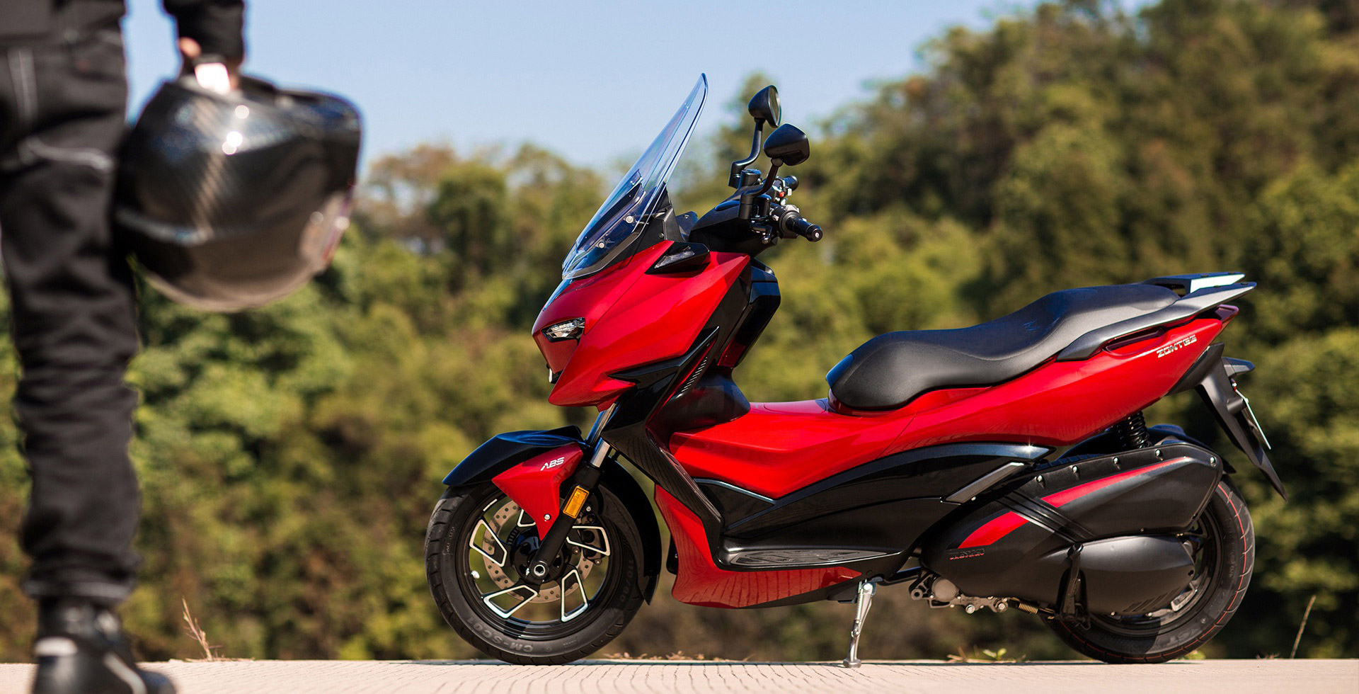 - Τέλος το Ε350, το κορυφαίο scooter της γκάμας, διαθέτει εξαιρετική αισθητική και μοναδικά χαρακτηριστικά απόδοσης και εξοπλισμού. Ο μονοκύλινδρος κινητήρας των 349 κ.εκ. αποδίδει 37 ίππους και 38Nm ροπής, εξασφαλίζοντας δυναμικές επιδόσεις. Στον βασικό εξοπλισμό περιλαμβάνονται φώτα LED, ψηφιακά όργανα, θύρες USB, σύστημα ελέγχου πίεσης ελαστικών, ABS, Traction Control, ηλεκτρικά ρυθμιζόμενη ζελατίνα, θερμαινόμενα grip, σύστημα εκκίνησης χωρίς κλειδί και θέσεις για δύο full face κράνη κάτω από τη σέλα. Η τιμή του εντυπωσιακού Ε350 διαμορφώνεται στα 5.295 ευρώ, μειωμένη κατά 300€.