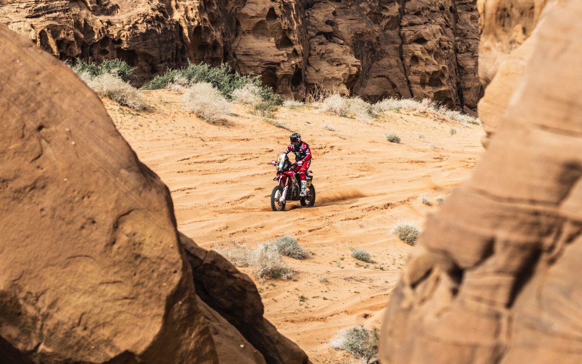 Στις μοτοσικλέτες, ο Ισπανός Τόσα Σαρέινα της Monster Energy Honda Team προηγείται με μία CRF 450 Rally του Αυστραλού Ντάνιελ Σάντερ (Red Bull GasGas Factory Racing) με διαφορά μόλις 12 δευτερολέπτων.