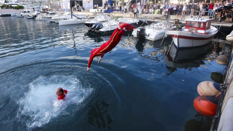 F1 - Λεκλέρ και Βασέρ πανηγύρισαν με βουτιά τη νίκη της Ferrari (vid)