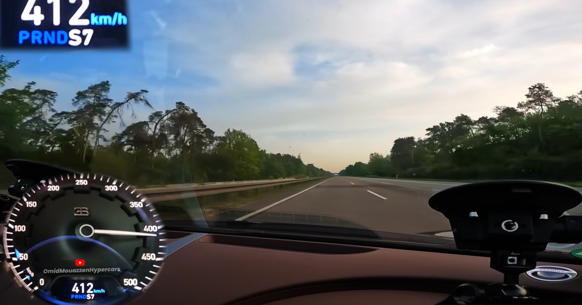 Πριν λίγες ημέρες, ένας Γερμανός με καταγωγή από το Ιράν, έπιασε με το γαλλικό hypercar των 1.500 ίππων ταχύτητα 412-413 χλμ/ώρα! Όπως έγραψε ο Ομίντ Μουαζέν κάτω από το βίντεο που ανέβασε στο youtube, «το να κάνω με τη δική μου Bugatti στον αυτοκινητόδρομο κάτι που ίσως ελάχιστοι έχουν κάνει, είναι απερίγραπτο».