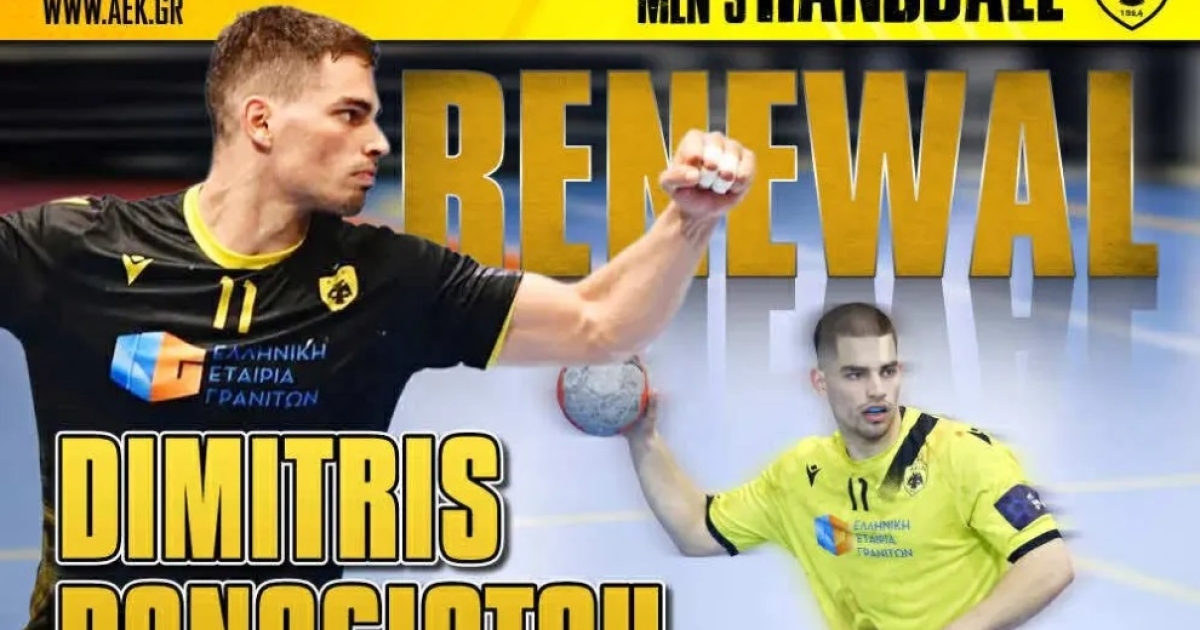 «Η ΑΕΚ βρίσκεται στην ευχάριστη θέση να ανακοινώσει την ανανέωση της συνεργασίας της με τον Δημήτρη Παναγιώτου. Ο 21χρονος (21/05/2004) διεθνής πλέι μέικερ υπέγραψε το νέο του συμβόλαιο και θα παραμείνει στο δυναμικό της ανδρικής ομάδας Χάντμπολ για δύο ακόμα χρόνια.