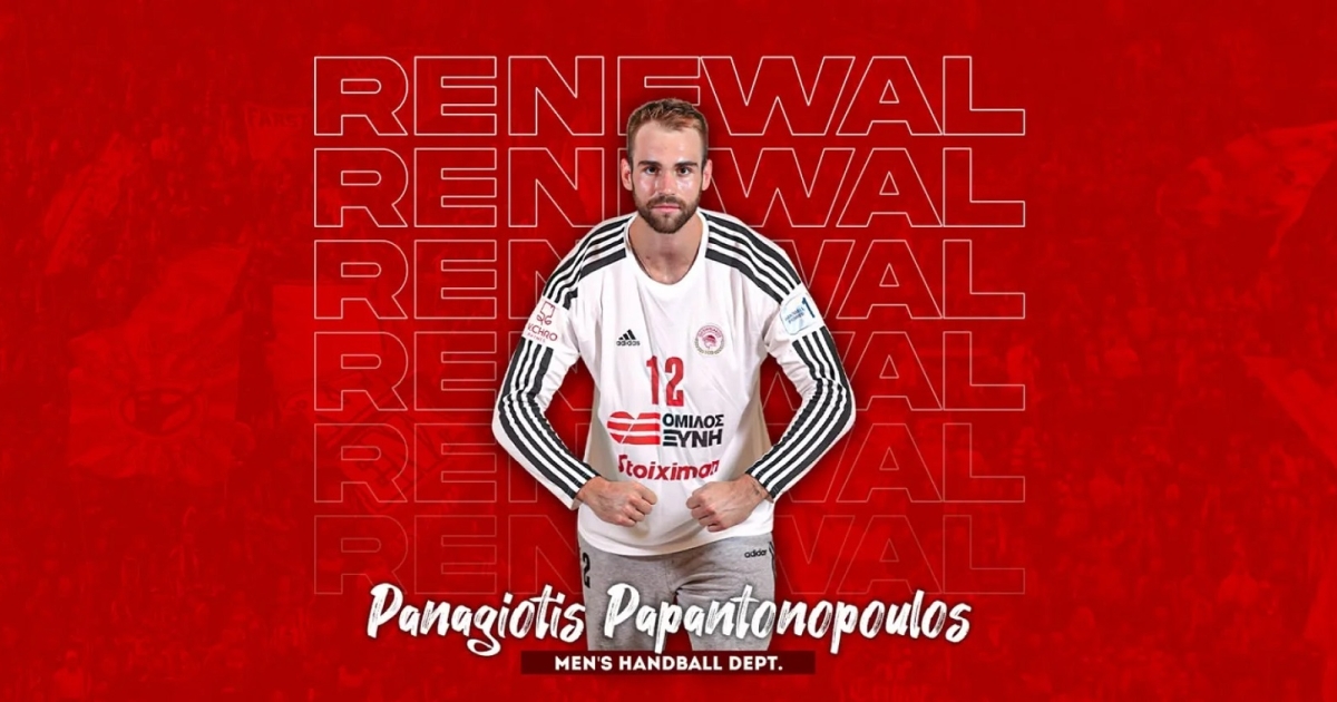 «Ο ΟΛΥΜΠΙΑΚΟΣ Σ.Φ.Π. ανακοινώνει την ανανέωση της συνεργασίας του με τον Πάνο Παπαντωνόπουλο. Ο διεθνής τερματοφύλακας υπέγραψε το νέο του συμβόλαιο και παραμένει στο ρόστερ της ομάδας χάντμπολ του συλλόγου.