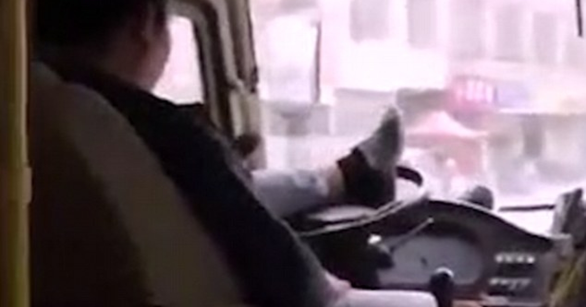 Ένας οδηγός λεωφορείου στην Κίνα πιάστηκε να οδηγεί με τα πόδια, ενώ έκανε χρήση του κινητού του!
