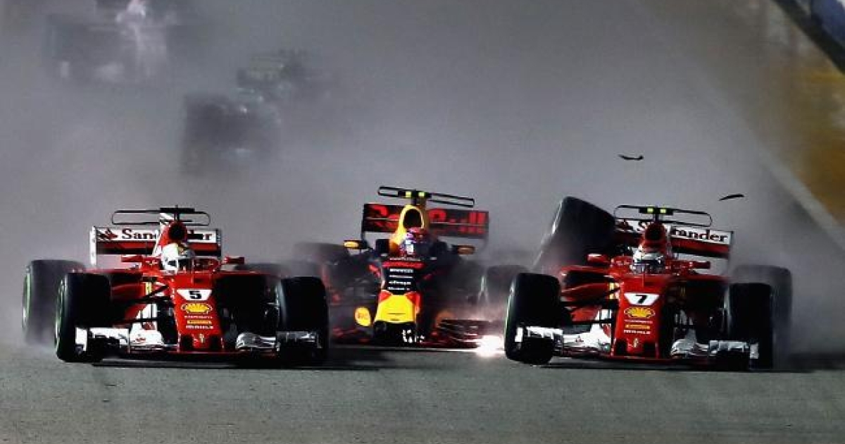 Μια από τις πιο επεισοδιακές εκκινήσεις που έχουμε δει ποτέ διαδραματίστηκε στη Σιγκαπούρη, όταν οι δύο Ferrari έκαναν... σάντουιτς τον Μαξ Φερστάπεν. Ο Σεμπάστιαν Φέτελ κατάφερε να συνεχίσει για λίγο, σε αντίθεση με τον Ολλανδό και τον Κίμι Ραϊκόνεν που εγκατέλειψαν αμέσως. Ο νικητής του αγώνα ήταν ο Λιούις Χάμιλτον, ο οποίος βρέθηκε γρήγορα να ηγείται και τελικά, να κερδίζει. Όταν ερωτήθηκε για το ατύχημα της εκκίνησης, είπε: