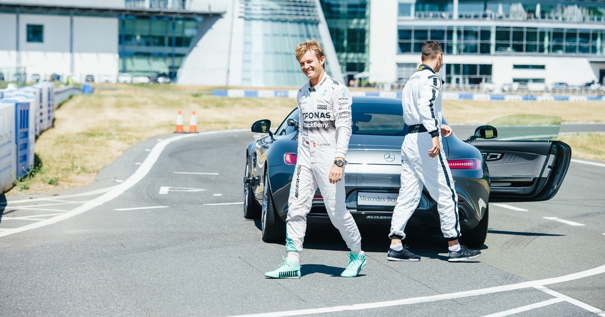 Η κόντρα πραγματοποιήθηκε στο πλαίσιο μιας ενέργειας δημοσίων σχέσεων με μια Mercedes AMG GTS, στην πίστα του Mercedes Benz World της Βρετανίας, όπου πραγματοποιούνται σεμινάρια οδήγησης. Για να είμαστε δίκαιοι, ο χρονομετρημένος γύρος του Ρόσμπεργκ ξεκίνησε από στάση ενώ αυτός του Κάιμερ εν κινήσει, ώστε ο παίκτης του γκολφ να έχει πλεονέκτημα. Ταυτόχρονα η πίστα είναι εξαιρετικά στενή και μικρή –φανταστείτε ότι ένας γύρος ολοκληρώθηκε σε μόλις 43 δευτερόλεπτα- με αποτέλεσμα το πλεονέκτημα της έναρξης εν κινήσει του Κάιμερ να είναι τεράστιο.