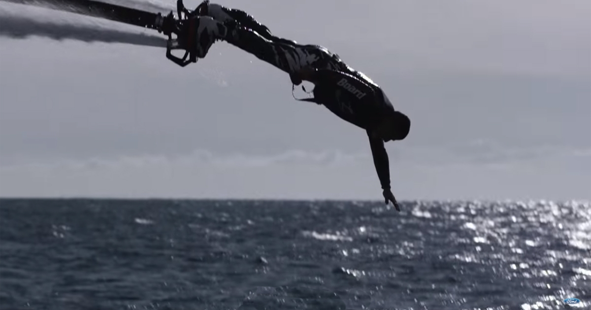Βουτιές, απίστευτα ακροβατικά, περιστροφές, απογειώσεις… Κανένα άλλο μέσο δεν εξασφαλίζει την ικανότητα να ίπτασαι και να βουτάς ταυτόχρονα, εκτός από το Flyboard, μια εφεύρεση του Φράνκι Ζαπάτα. Ο Γάλλος δημιουργός του, πρώην αθλητής του jet ski, εμπνεύστηκε την απίστευτη αυτή «ιπτάμενη σανίδα» το 2011 και την τελειοποίησε μόλις πρόσφατα. Εκμεταλλευόμενος το σύστημα πρόωσης ενός jet ski, παρέχει υπό μεγάλη πίεση νερό μέσω μιας σωλήνας στη σανίδα του. Το αποτέλεσμα είναι εμφανές στο video, όπου η διασκέδαση περισσεύει.