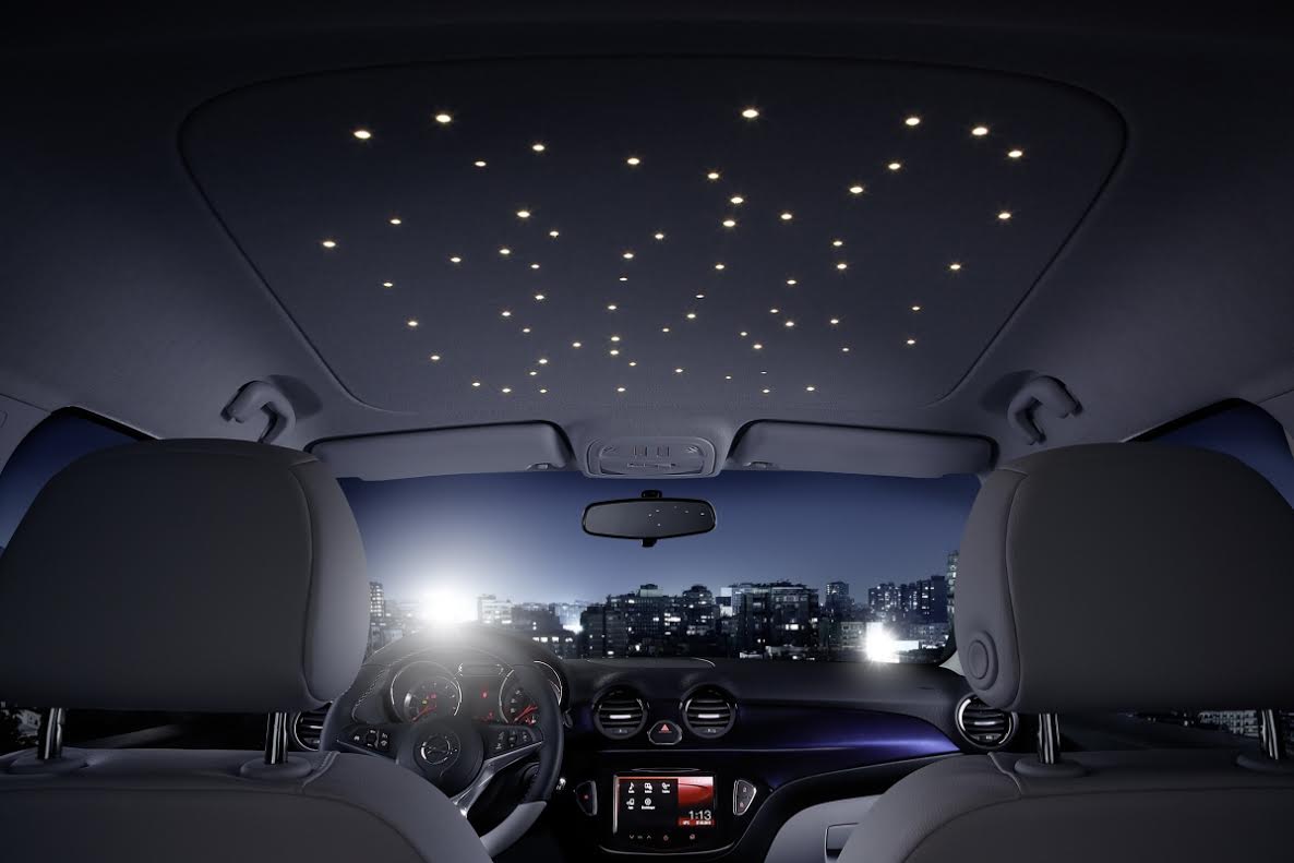Για το Adam, η Opel προσφέρει αμέτρητες δυνατότητες εξατομίκευσης, ακόμη και τον... ουρανό με τ'άστρα! Μιλάμε κυριολεκτικά, καθώς -στα πρότυπα των Rolls Royce- προσφέρεται η δυνατότητα προσθήκης εκατοντάδων στοιχείων LED στην οροφή, που την κάνουν να λάμπει σαν ξάστερος ουρανός.