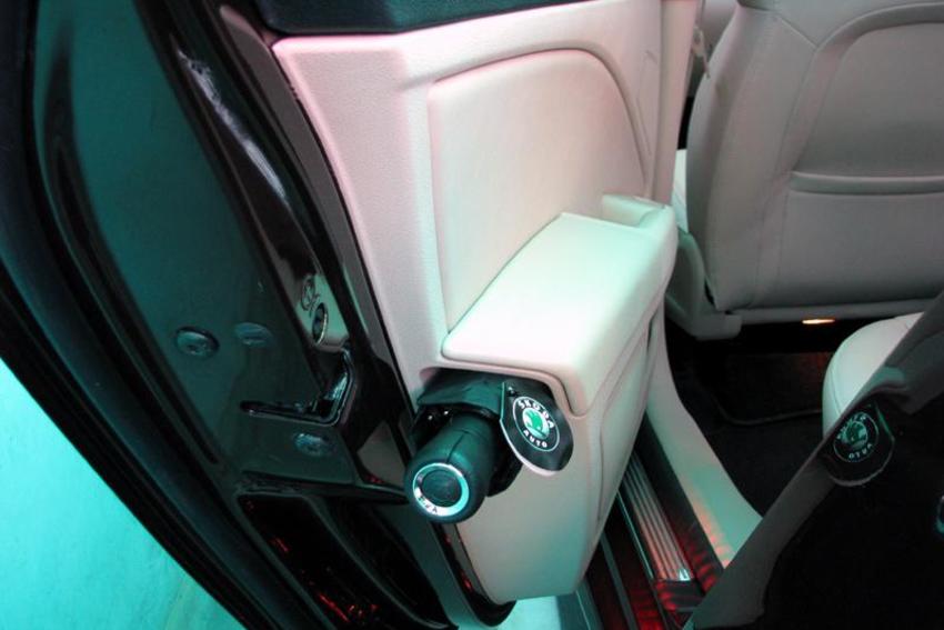 Η Skoda προσφέρει ένα στοιχείο δανεισμένο από Rolls-Royce, που προβλέπει αποθηκευτικό χώρο για τις ομπρέλες, ενσωματωμένο μέσα στις πίσω πόρτες! Ετσι αποκλείεται, να σας βρει απροετοίμαστους η βροχή, αφού η ομπρέλα πάει συνεχώς βόλτα με το αυτοκίνητο. Εκτός βέβαια και αν την ξεχάσεις κάπου, πράγμα που συμβαίνει συχνά, όταν έχει σταματήσει η βροχή.