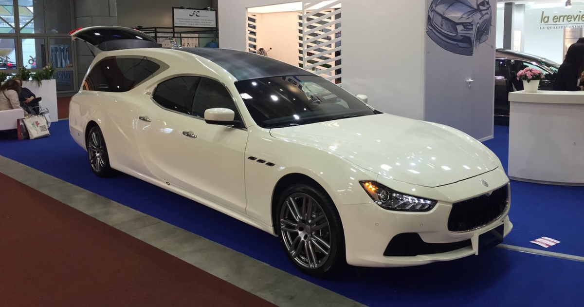 Με το όνομα AutoFunebre Ellena G 3.0 συστήνεται πλέον αυτή η Maserati Ghibli, αφού μεταμορφώθηκε σε νεκροφόρα! Κατασκευάστηκε από την Ellena Autotrasformazioni και έχει τεράστιες διαστάσεις ακόμη και για τα... δεδομένα της κατηγορίας, αφού μετρά 6,62 μέτρα μήκους και 1,94μ πλάτους!