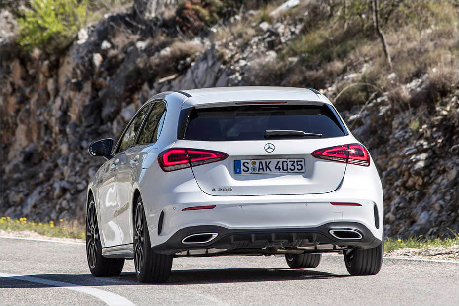 Ακόμη και από την ακτή, η πρώτη εικόνα του compact μοντέλου με σήμα το αστέρι μας εντυπωσίασε αισθητικά, ενώ από κοντά διαπιστώνεις δια γυμνού οφθαλμού το αυξημένο μήκος του αμαξώματος, που φτάνει τα 4,42 μ. και είναι 12 εκατοστά μεγαλύτερο από την A-class τρίτης γενιάς. Πρόκειται για μία διαφορά, που ωφελεί κυρίως τους πίσω επιβάτες, καθώς απολαμβάνουν πλέον μεγάλης ευρυχωρίας ακόμη και αν αγγίζει το ύψος τους τα 1,90 μ. Πιο μεγάλο έγινε και το πορτ-μπαγκάζ, με τον όγκο του να κυμαίνεται μεταξύ 370 και 1.200 λίτρων, όμως εδώ θεωρούμε πολύ σημαντικότερο το πλατύτερο –κατά 20 ολόκληρα εκατοστά- άνοιγμα, που διευκολύνει αφάνταστα τη φόρτωση των αποσκευών.
