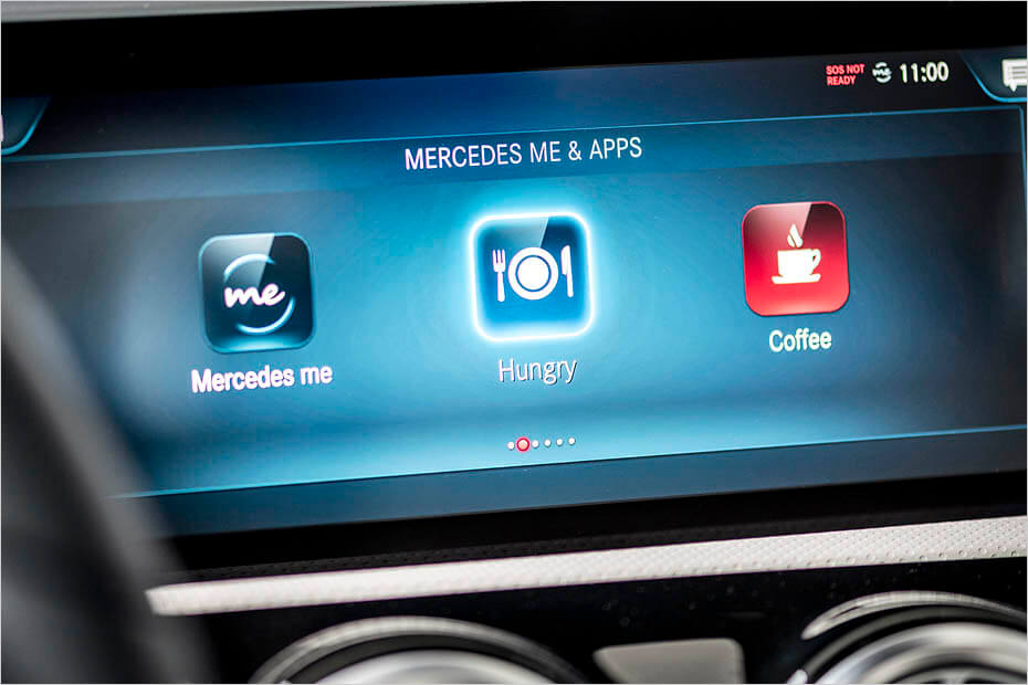 Σημείο αναφοράς αποτελεί χωρίς αμφιβολία το κόκπιτ με δύο οθόνες 10,25 ιντσών η καθεμία, που παραπέμπουν στην πολυτελέστατη Mercedes S-class και εκφράζουν την είσοδο σε μία νέα ψηφιακή εποχή, ιδιαίτερα σε συνδυασμό με το επαναστατικό σύστημα πολυμέσων Μercedes Benz User Experience (MBUX), το οποίο μαθαίνει τις συνήθειες και τις επιθυμίες του οδηγού, προσαρμόζεται σε αυτές και τον κατανοεί καλύτερα. Ο χειρισμός του γίνεται μέσω της οθόνης αφής (πρεμιέρα για τη Mercedes) και pads αφής στην κεντρική κονσόλα και στο τιμόνι, τα οποία στέλνουν στο χρονοντούλαπο της ιστορίας τον γνωστό περιστροφικό διακόπτη.