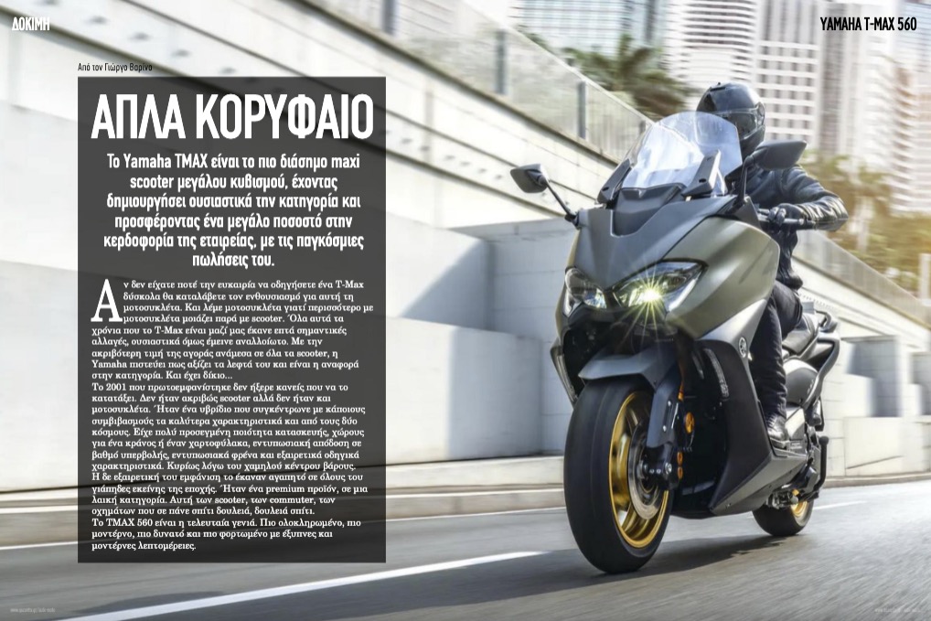 Αν δεν είχατε ποτέ την ευκαιρία να οδηγήσετε ένα T-Max δύσκολα θα καταλάβετε τον ενθουσιασμό για αυτή τη μοτοσυκλέτα. Και λέμε μοτοσυκλέτα γιατί περισσότερο με μοτοσυκλέτα μοιάζει παρά με scooter. Όλα αυτά τα χρόνια που το T-Max είναι μαζί μας έκανε επτά σημαντικές αλλαγές, ουσιαστικά όμως έμεινε αναλλοίωτο. Με την ακριβότερη τιμή της αγοράς ανάμεσα σε όλα τα scooter, η Yamaha πιστεύει πως αξίζει τα λεφτά του και είναι η αναφορά στην κατηγορία. Και έχει δίκιο...