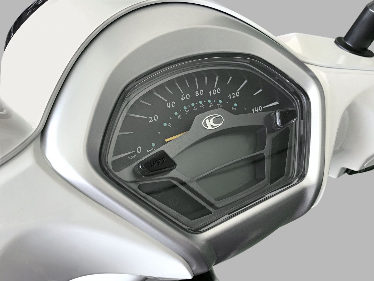 Τα πλαστικά συνδυάζονται όμορφα με το χρώμιο, με τη σέλα να αποτελεί επίσης μέρος της σχεδίασης τόσο με το σχήμα όσο και με το χρώμα, που αλλάζει ανάλογα με το χρώμα που είναι βαμμένο το μηχανάκι. Κάτι που κάνει εντύπωση ωστόσο είναι ότι η Kymco δεν έμεινε στην εμφάνιση του Like αλλά φρόντισε την ποιότητα κατασκευής και το φινίρισμα του Like, με όλα τα μέρη του να φαίνονται στιβαρά και καλοφτιαγμένα. Ο πίνακας οργάνων έχει επίσης μια λίγο ρετρό αίσθηση στο αναλογικό ταχύμετρο, συνοδεύεται ωστόσο από δύο ψηφιακές οθόνες που παρέχουν τις υπόλοιπες πληροφορίες.