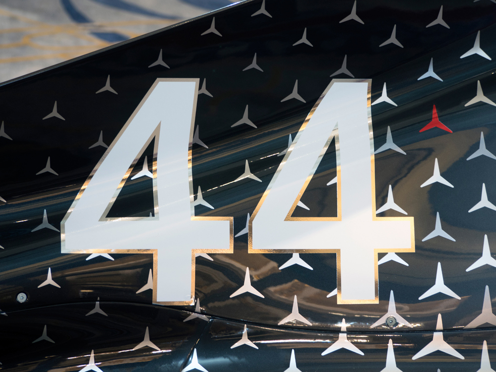 Στο μονοθέσιο της Mercedes με τα νέα χρώματα του 2020 υπήρχε το νούμερο 44 του έξι φορές παγκόσμιου πρωταθλητή Λιούις Χάμιλτον.