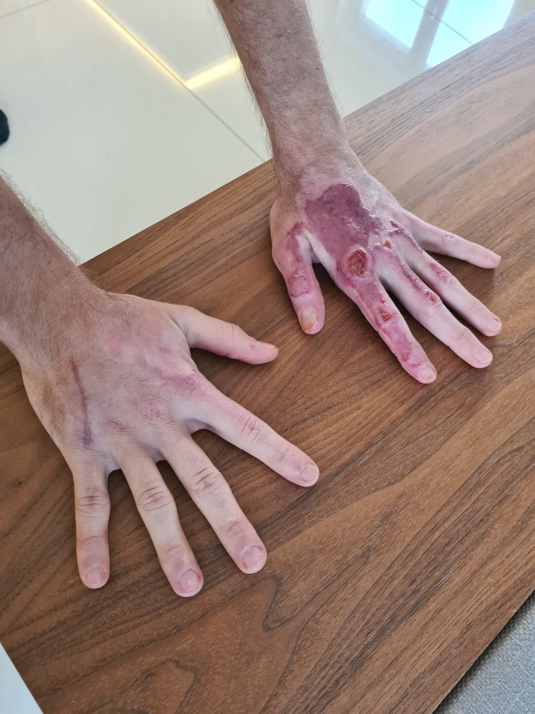 Σε μία άλλη φωτογραφία που ανέβασε ο Γκροζάν, φαίνονται και τα δύο χέρια του σε κοντινή λήψη, ενώ έχει γράψει το εξής σχόλιο: «Δεν φαίνονται ακόμη τόσο ωραία, οπότε μη συνεχίσετε να κάνετε κλικ, αν δεν αισθάνεστε καλά».