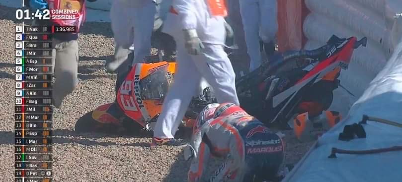 Με... αναποδιές ξεκίνησε το Σάββατο για τον Μαρκ Μάρκεθ. Ο αναβάτης της Repsol Honda σημείωσε πτώση στην έβδομη στροφή της πίστας με μεγάλη ταχύτητα, ευτυχώς όμως δεν τραυματίστηκε. Ο Ισπανός επέστρεψε πρόσφατα στη δράση του MotoGP και αρχικά, η πτώση του προκάλεσε μεγάλη ανησυχία στην ομάδα, μέχρι να τους καθησυχάσει το ιατρικό τιμ της πίστας.