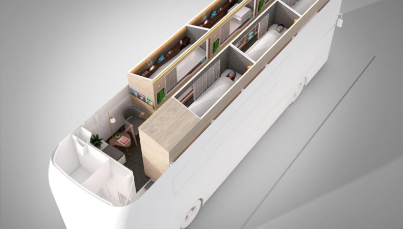 Οι κουκέτες θα είναι εξοπλισμένες με μάσκες ύπνου, νερό, αναψυκτικά και άλλα, ενώ θα διαθέτει χαλαρωτικό φωτισμό (για να κοιμάσαι ακόμη και όταν δεν θέλεις). Το λεωφορείο - ξενοδοχείο θα μπει σε οκτώ γραμμές μέσων μεταφοράς στην Αγγλία όπως υποστηρίζει η εταιρεία.