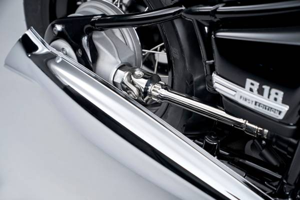 Το κεντρικό στοιχείο της ανάρτησης της νέας R 18 είναι ένα ατσάλινο σωληνωτό πλαίσιο δύο τμημάτων. Η σχεδίασή του συνεχίζει τη μακρά παράδοση της BMW Motorrad στο συγκεκριμένο τύπο πλαισίου. Η εξαιρετική ποιότητα κατασκευής και η σχολαστική προσοχή στη λεπτομέρεια είναι εμφανής ακόμα και σε ‘μη εμφανή’ σημεία όπως οι συγκολλήσεις μεταξύ ατσάλινων σωλήνων και χυτών ή σφυρήλατων εξαρτημάτων. Όπως στη θρυλική BMW R 5, το πίσω ψαλίδι – με παρόμοια σχεδίαση – περικλείει τον πίσω άξονα μετάδοσης με αυθεντικό στυλ μέσω βιδών έδρασης.