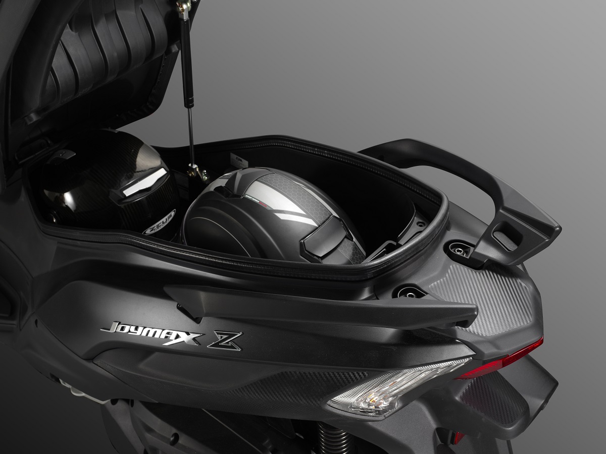 Παρά τις συμπαγείς διαστάσεις, τo JOYMAX Z 300 διαθέτεις μεγάλους αποθηκευτικούς χώρους. Κάτω από το κάθισμα, ένας φωτιζόμενος αποθηκευτικός χώρος 48 λίτρων, μπορεί να φιλοξενήσει 2 Full Face κράνη και μικροπράγματα. Επιπλέον στο εσωτερικό της ποδιάς, υπάρχει κλειστός αποθηκευτικός χώρος, με θύρα USB 2.0 για τη φόρτιση συσκευής. Η εγκατάσταση σχάρας βαλίτσας ή πλάτης συνεπιβάτη, είναι εύκολη, χάρη στις ειδικά σχεδιασμένες χειρολαβές συνεπιβάτη. Διαθέτει κεντρικό και πλαϊνό σταντ με διακόπτη λειτουργίας, καθώς και μαγνητικό πολυδιακόπτη ασφαλείας κλειδαριάς, αυξάνοντας την ασφάλεια σε απόπειρα κλοπής.