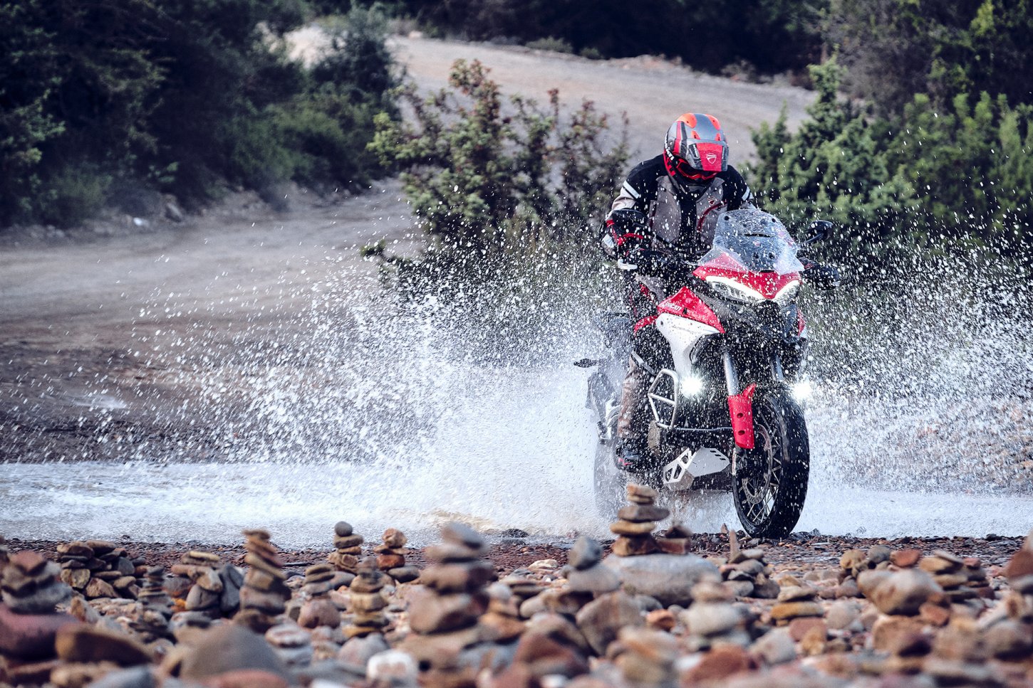 Η Multistrada έχει ένα όνομα που ενσωματώνει από μόνο του μια φιλόδοξη υπόσχεση: την ικανότητα να προσφέρει μεγάλη ευελιξία σε κάθε δρόμο. Πραγματικά, η Multistrada γεννήθηκε με την πρόθεση να είναι μια σπορ αλλά άνετη μοτοσυκλέτα, ικανή να αντιμετωπίσει οποιαδήποτε οδική κατάσταση, άσφαλτο ή χωματόδρομο, με ασφάλεια και σταθερότητα.