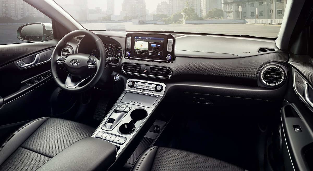 Το Hyundai Kona Electric ξεχωρίζει για την άρτια αισθητική του αλλά και την κορυφαία αεροδυναμική στην κατηγορία, με συντελεστή οπισθέλκουσας μόλις 0.288. Σε σχέση με τα συμβατικά μοντέλα, διαθέτει έναν εντελώς νέο ψηφιακό πίνακα οργάνων 7 ιντσών, ενώ για την αυτόματη μετάδοση δεν υπάρχει κλασικός επιλογέας, παρά μόνο διακόπτες.