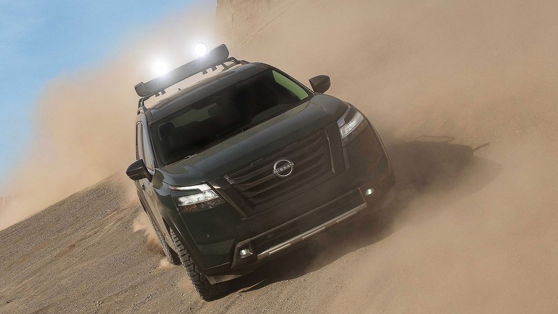 Για να κάνει αυτή την αλλαγή ρότας πιο εμφανή παρουσίασε μία έκδοση του νέου Pathfinder με πρόσθετους προβολείς πάνω σε ειδική σχάρα και ελαστικά εκτός δρόμου, αν και είναι ξεκάθαρο ότι η πλειοψηφία των υποψήφιων αγοραστών του το βλέπει ως ένα κλασικό οικογενειακό SUV με πεντάμετρο αμάξωμα και τρεις σειρές καθισμάτων, χάρη στις οποίες μπορεί να μεταφέρει έως οκτώ επιβάτες.